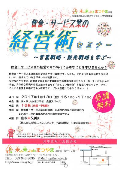 このセミナーは松山市民しごと創造ワンストップ支援事業です。