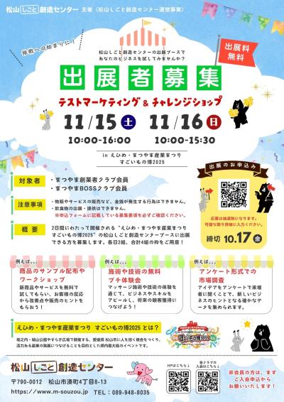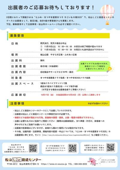 ・その他、出展内容・注意事項、開催内容の変更・中止については、「えひめ・まつやま産業まつり2025」の出展要項に準じます。松山市のHPをご確認ください。