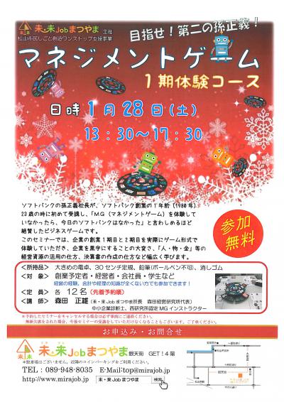 - 【創業・経営】「MG(マネジメントゲーム)1期体験コース(1月開催)
