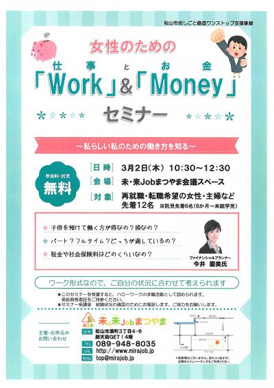 - 【就労】 女性のための「Work(仕事)」と「Money(お金)」セミナー ※女性求職者限定セミナー
