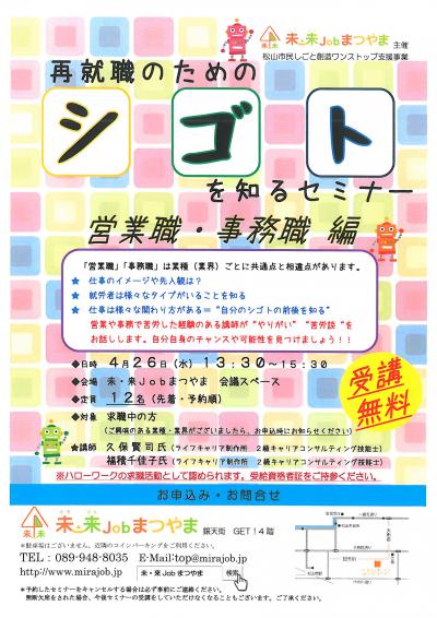 このセミナーは松山市民しごと創造ワンストップ支援事業です。
