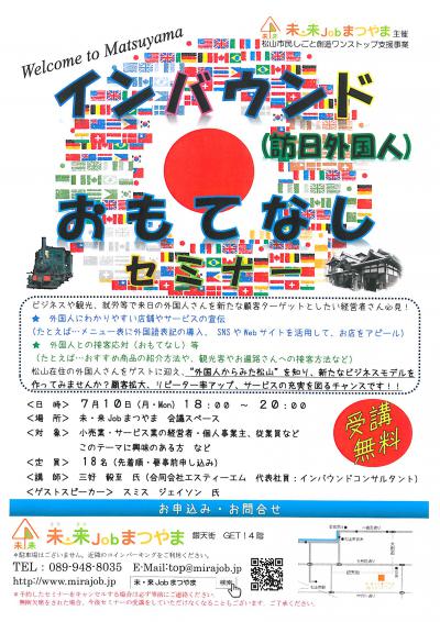 ビジネス・観光などで来日する外国人さんを新たな顧客ターゲットとしたい経営者さんや、従業員さん必見のセミナーです。