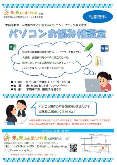 場所:未・来Jobまつやま フリースペース(パソコンスペース)