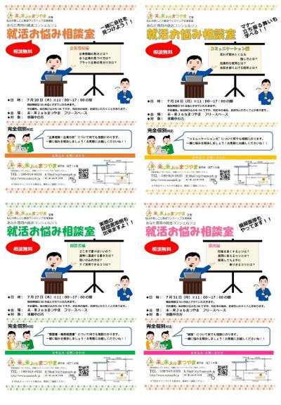 ※この相談会は松山市民しごと創造ワンストップ支援事業です。