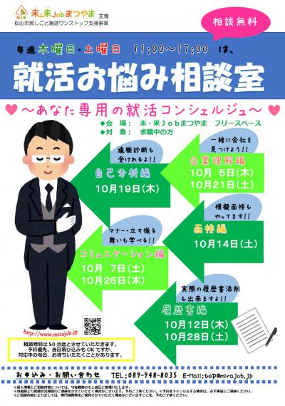 ※この相談会は松山市民しごと創造ワンストップ支援事業です。