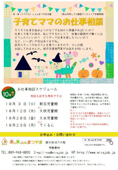 - 【就労】子育てママのお仕事相談(10月)