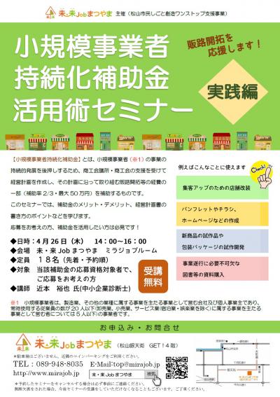 このセミナーは松山市民しごと創造ワンストップ支援事業です。