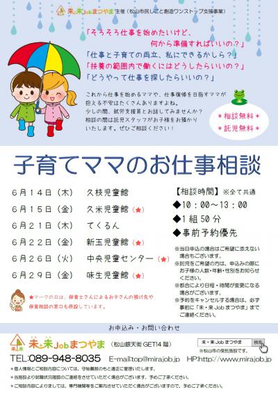 【就労】子育てママのお仕事相談(6月)
