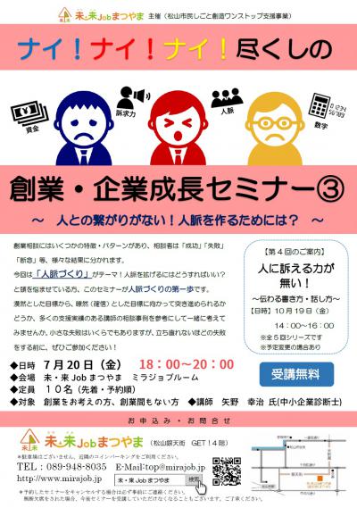- 【創業・経営】ナイ!ナイ!ナイ!尽くしの「創業・企業成長セミナー③」