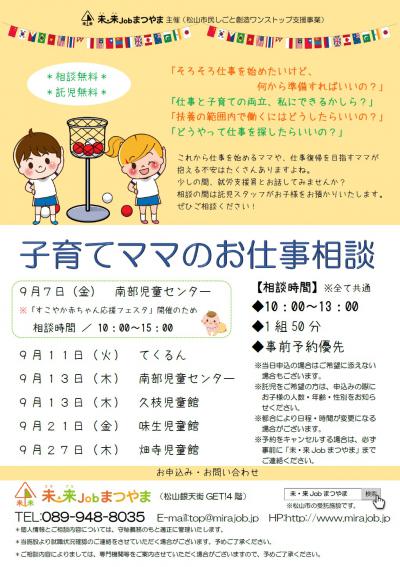 この相談会は松山市民しごと創造ワンストップ支援事業です。