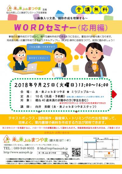 - 【就労】WORDセミナー<応用編>(9月)若年
