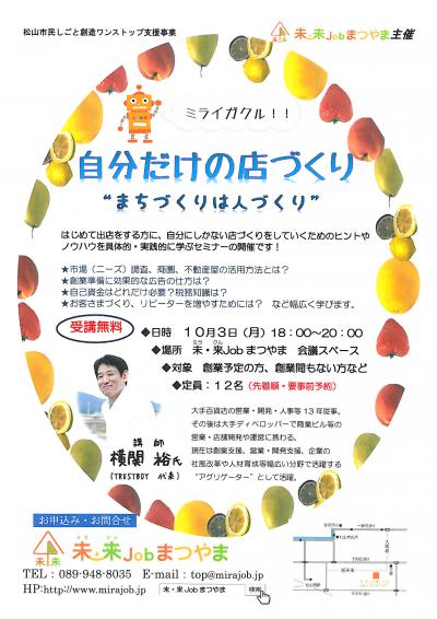 このセミナーは松山市民しごと創造ワンストップ支援事業です。