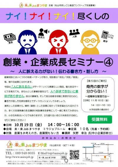 - 【創業・経営】ナイ!ナイ!ナイ!尽くしの「創業・企業成長セミナー④」