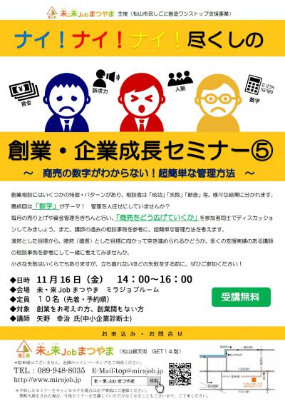 - 【創業・経営】ナイ!ナイ!ナイ!尽くしの「創業・企業成長セミナー⑤」