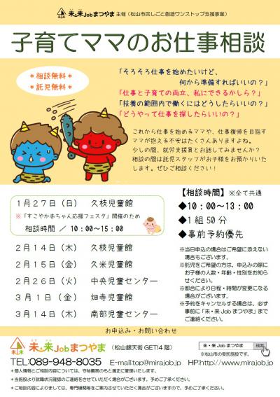 【就労】子育てママのお仕事相談(1月)