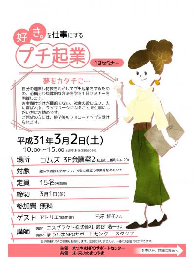 - 【創業・経営】好き。を仕事にする。プチ起業<1日セミナー>