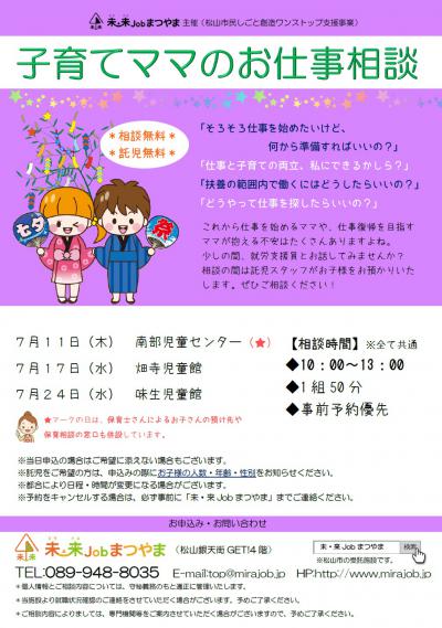 【就労】子育てママのお仕事相談(7月)