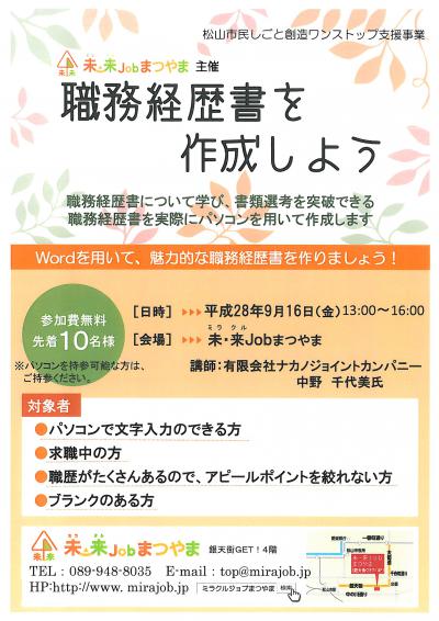 - 【就労】 職務経歴書を作成しようセミナー(パソコンを使用します)