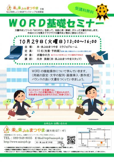※このセミナーを受講すると、ハローワークの求職活動として認められます。受給資格者証をお持ちの方はご持参ください。