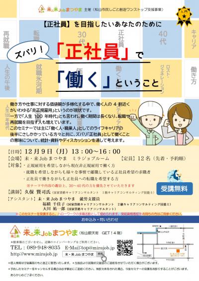 後半にさしかかっている方々と共に、ズバリ「正社員」として働くことの意味について、統計・資料やディスカッションを通して考えます。