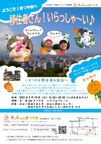 対象:松山へ移住された方・松山に移住したい方・ 移住された方とお話ししたい地元の方 など