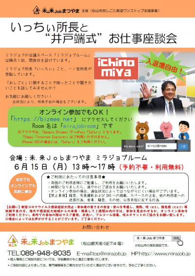 - 【ミラジョブルーム開放DAY】いっちぃ所長と”井戸端式”お仕事座談会