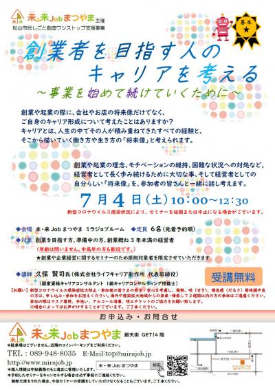 このセミナーは、松山市民しごと創造ワンストップ支援事業です。