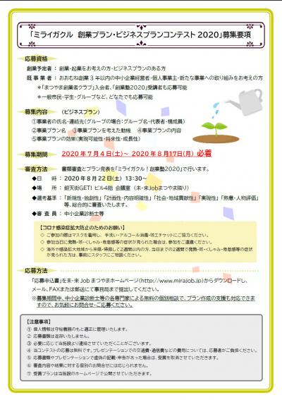 - 【創業・経営】ミライガクル 創業プラン・ビジネスプランコンテスト2020