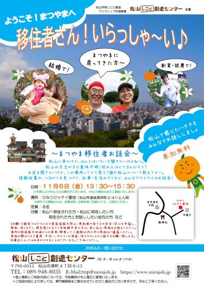対象:松山へ移住された方・松山に移住したい方・ 移住された方とお話ししたい地元の方 など