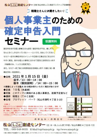 - 【創業・経営】個人事業主のための確定申告入門セミナー