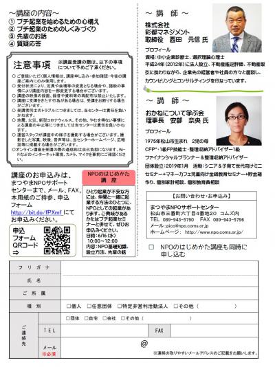 ・参加ご希望の方は、「まつやまNPOサポートセンター」(089-943-5790)へお申し込みください。(PDF裏面が申込書になっています)