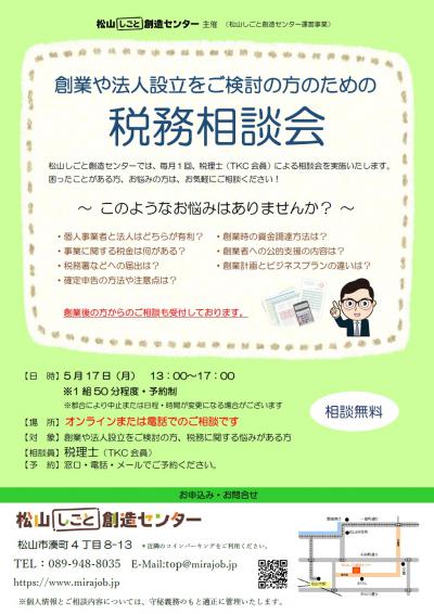 この相談会は松山しごと創造センター運営事業です。