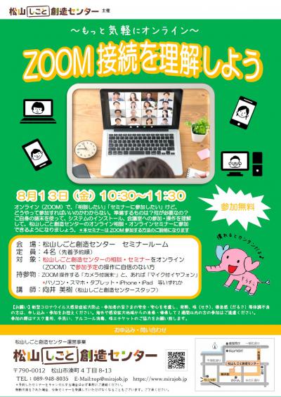 対 象:松山しごと創造センターの相談・セミナーをオンライン(ZOOM)