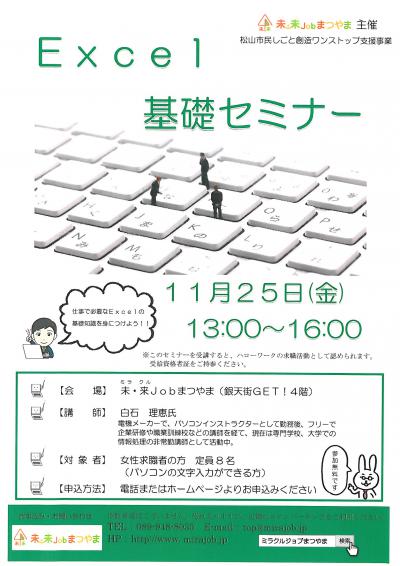 - 【就労】 Excel基礎セミナー(11月開催)