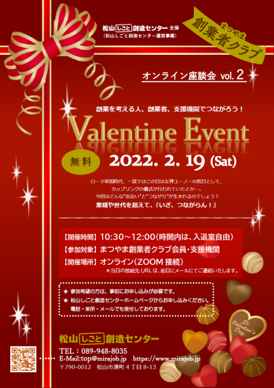- 【創業・経営】「まつやま創業者クラブ」オンライン座談会 vol.2