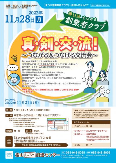- 【創業・経営】第11回「まつやま創業者クラブ」(申込受付は終了しました)